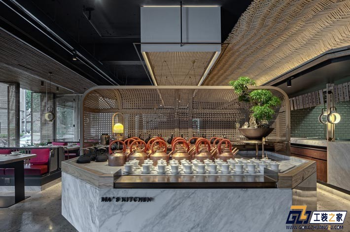 設計理念:為川菜餐館設計方案,設計師用竹子作為主要材料,竹子不僅溫暖而且透光性好,將整個自然回味悠長的感覺呈現給食客。