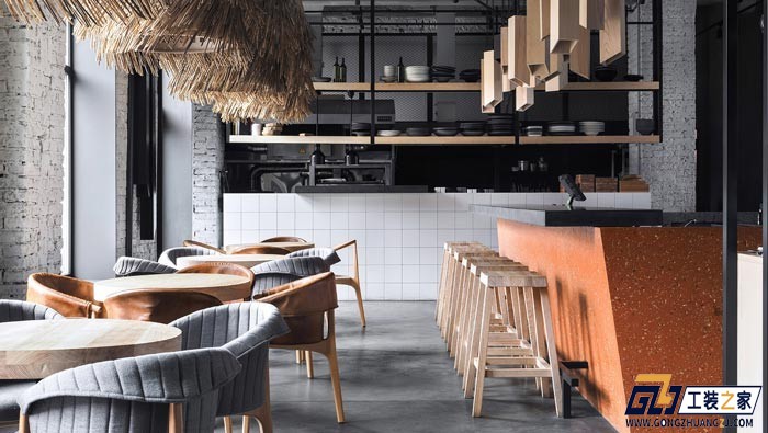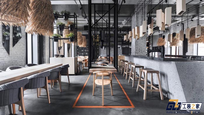 設(shè)計理念:本案為酒吧餐廳設(shè)計方案,采用開放式布局,五米高的天花板,混凝土橫梁和高窗戶,設(shè)計師與客戶商討之后,希望建立一間擁有酒吧元素的餐廳。