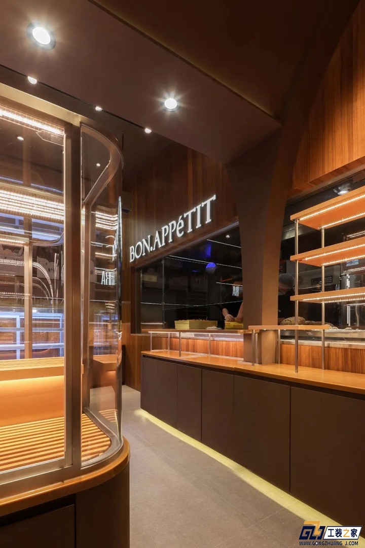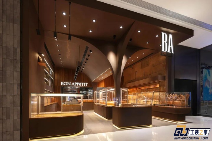設計理念:BA新法式烘焙店設計 采用圓形動線布局設計了整個空間,以應對每日高峰期的貨物流量。該設計不僅有效地提高了運營效率,還讓顧客更加方便地選擇喜歡的商品,使面包離顧客更近。