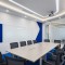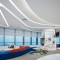 設計理念:設計師將前臺設計為形成弧線的引導,很自然地將人們的視線導向一旁的綜合休息區。舒適的沙發,幾只隨意擺放的休閑座椅,既有自由開放的公共空間,也可以供1-2人安靜地交流思考。標志性的紅藍色沙發,具備優雅及時尚氣息成為空間配色,在簡約明亮的雅白色的主調中,彰顯活力。在天花板的采光部分使用了軟膜天花的工藝包裹光源,避免了直角線條的生硬,貫穿了曲線綿延的視覺效果。在地面的處理上,地毯切割弧度呈現出的流線感與天花燈帶交相輝映,并將這一設計帶入整個辦公空間。一步一景亦融合,令整個空間層次起伏并生動有趣。