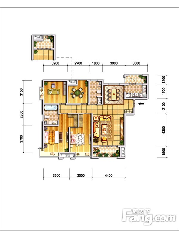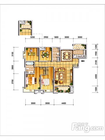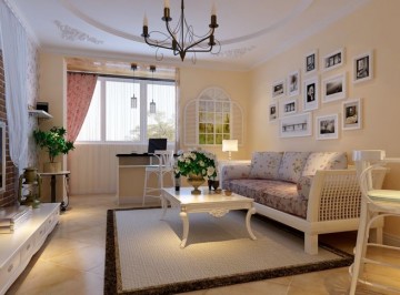 設計思路:設計上講求心靈的自然回歸感,給人一種撲面而來的濃郁氣息。把一些精細的后期配飾融入設計風格之中,充分體現設計師和業主所追求的一種安逸、舒適的生活氛圍。使用各種布藝和掛飾,歐式家具華麗的輪廓與精美的吊燈相得益彰。墻壁上也并不空寂,壁畫和裝飾的花瓶都使它增色不少。鮮花和綠色的植物也是很好的點綴。